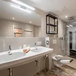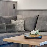 El apartamento, ubicado frente a las montañas, cuenta con una terraza y una zona de estar amueblada con un sofá. La propiedad también ofrece TV y TV de pantalla plana con canales vía satélite, así como comodidades de seguridad, incluyendo una caja fuerte y una llave electrónica, para su tranquilidad. El cuarto de baño está provisto de una ducha a ras de suelo y un inodoro separado de la ducha, además de secador de pelo y toallas de baño.